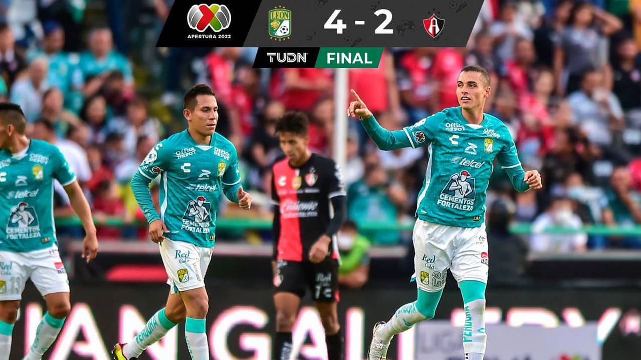 León venció por 4-2 al Atlas en un duelo furioso por parte de los guanajuatenses y errático para los tapatíos como parte de la Jornada 11 de la Liga MX.