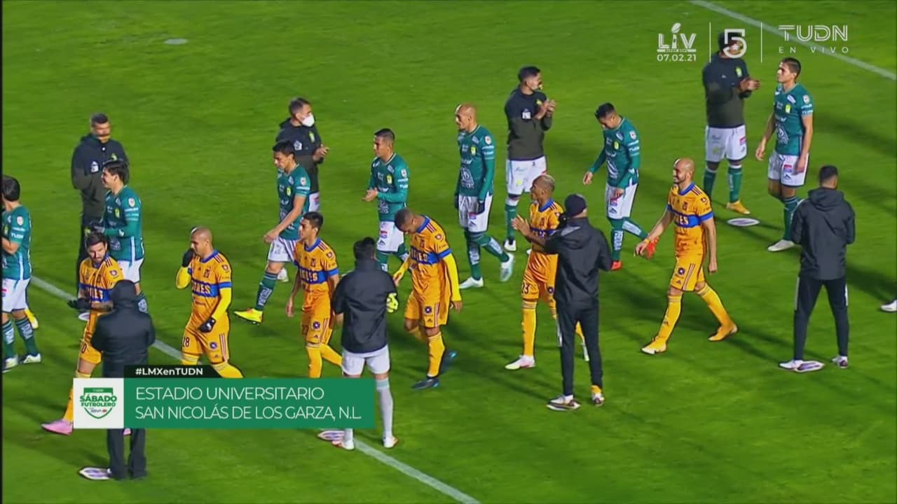 Tantos los suplentes de León como los de Tigres se formaron para recibir a los titulares y aplaudir mientras los 22 futbolistas salían de los vestidores y entraban a la cancha.