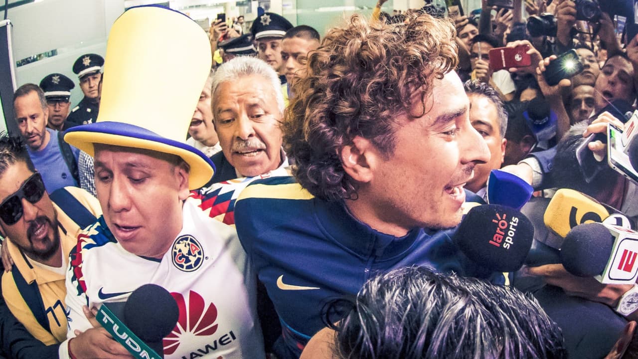 Con cánticos y porras, los seguidores de las Águilas abarrotaron la sala de llegada de vuelos internacionales para darle el primer espaldarazo al portero que llegó procedente de Madrid, España. Se estima que la cifra para recibir al exjugador del Standard Lieja fue de casi mil personas que se hicieron presentes en la Terminal 2 del Aeropuerto Internacional de la Ciudad de México.