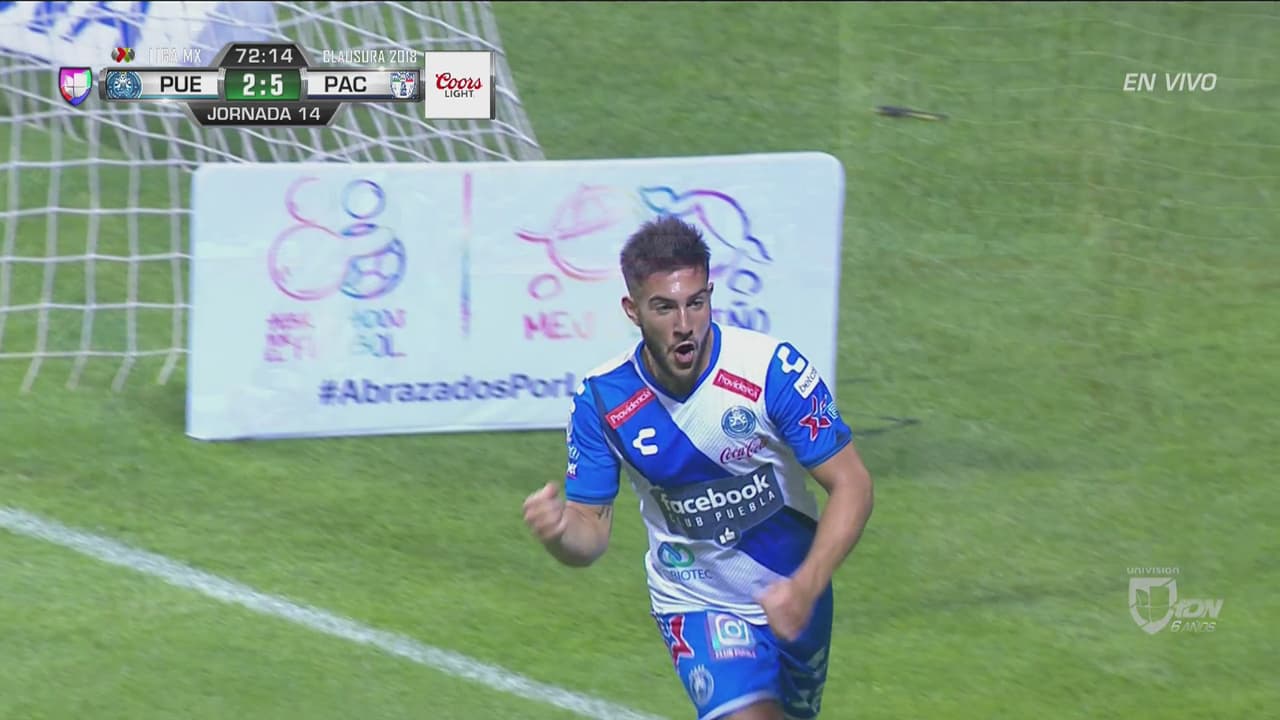 Lucas Cavallini hace el 2-5 de Puebla frente a Pachuca con un sólido cabezazo