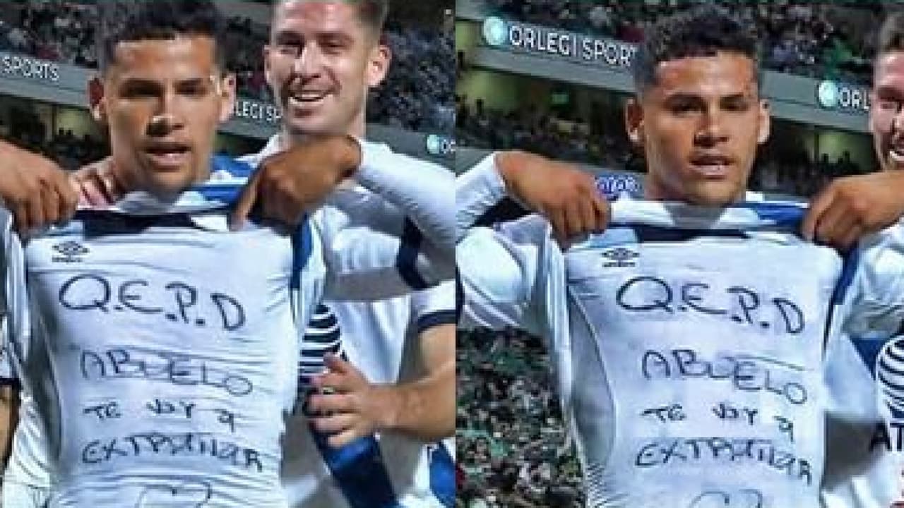 "Q.E.P.D. abuelo, te voy a extrañar", se leyó en la playera que tenía debajo de la camiseta de La Franja el jugador Maxi Araujo, que también hizo una señal al cielo.