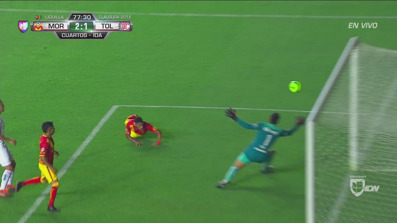 Ray Sandoval perdonó el 3-1 del Morelia al remata de cabeza a un costado frente a la portería de los Diablos.
