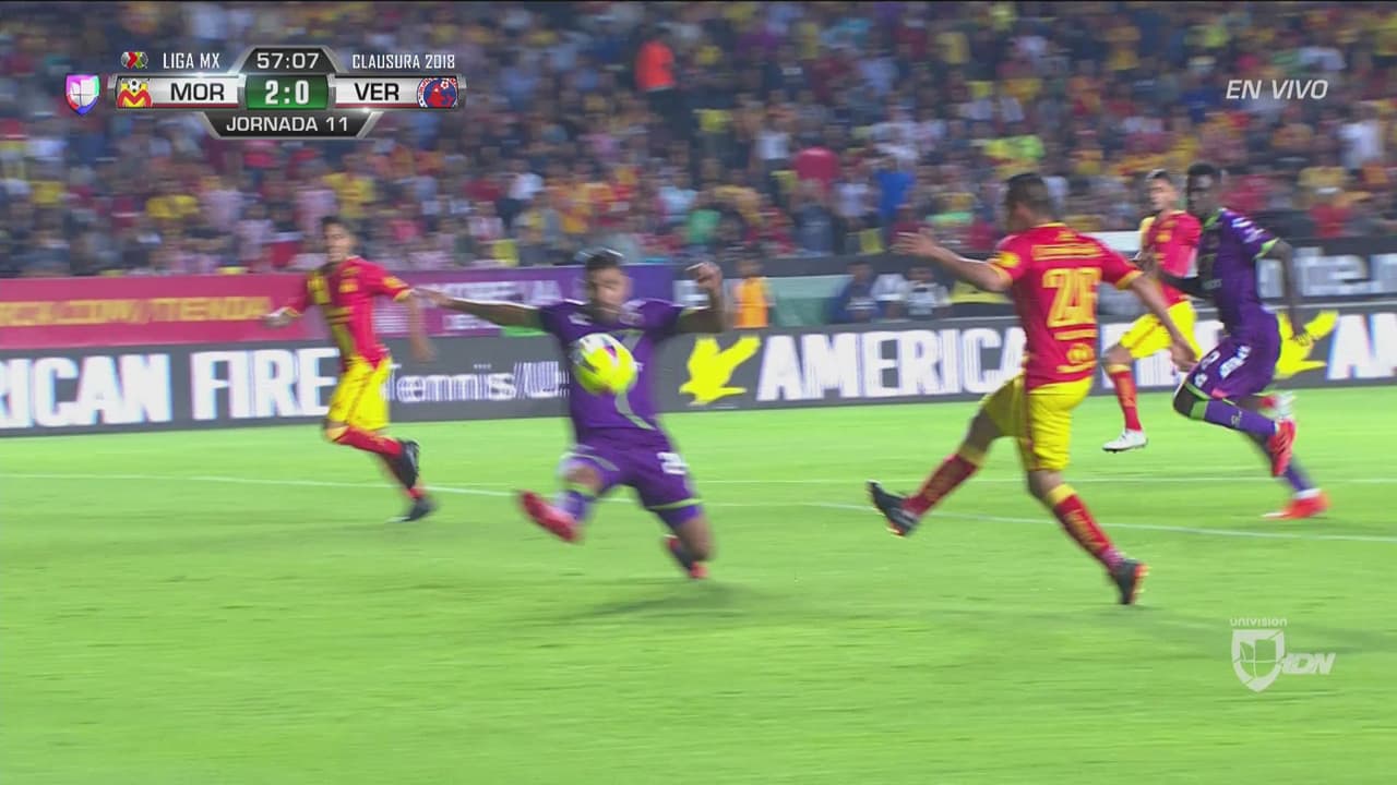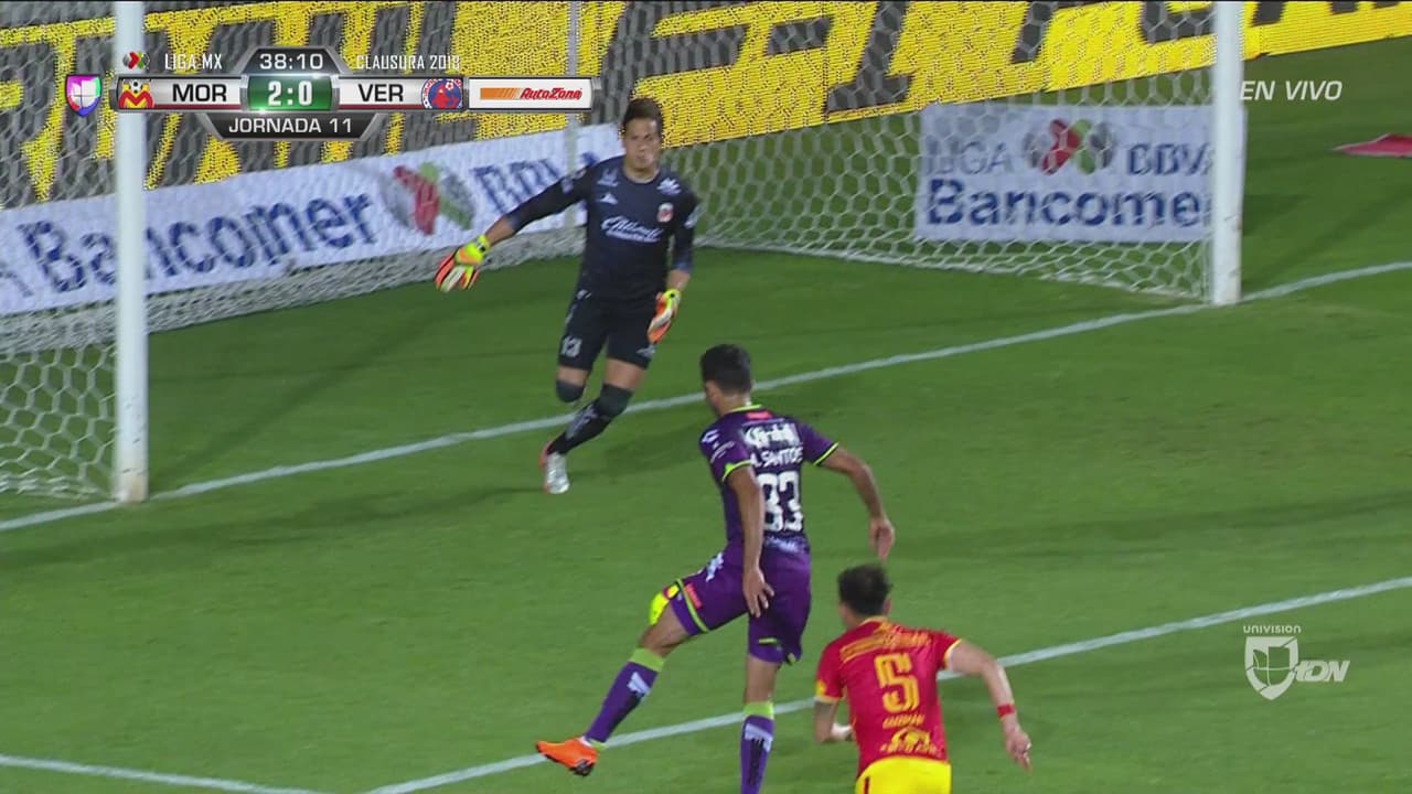 Tras verse abajo por dos goles en el marcador el conjunto de Veracruz se lanzó al frente y al minuto 38 casi logran la anotación, pero Carlos Rodríguez les robó la alegría con una barrida en la línea para evitar la caída de su marco y Monarcas se fue al descanso con el 2-0.