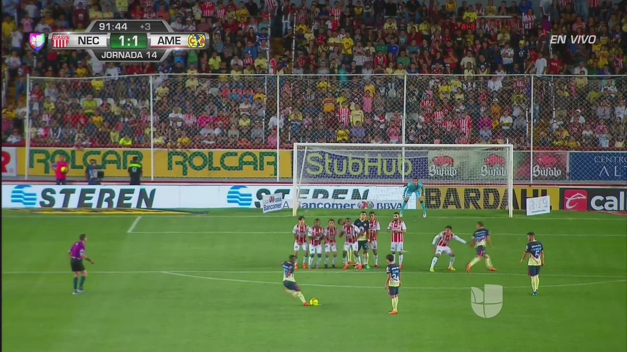 América se veía sofocado por Necaxa, sin embargo, en el último minuto tuvieron la oportunidad de ganar el encuentro con un tiro de R enato Ibarra que se estrelló en el poste que impidió que los azulcremas se fueran de Aguscalientes con el empate.