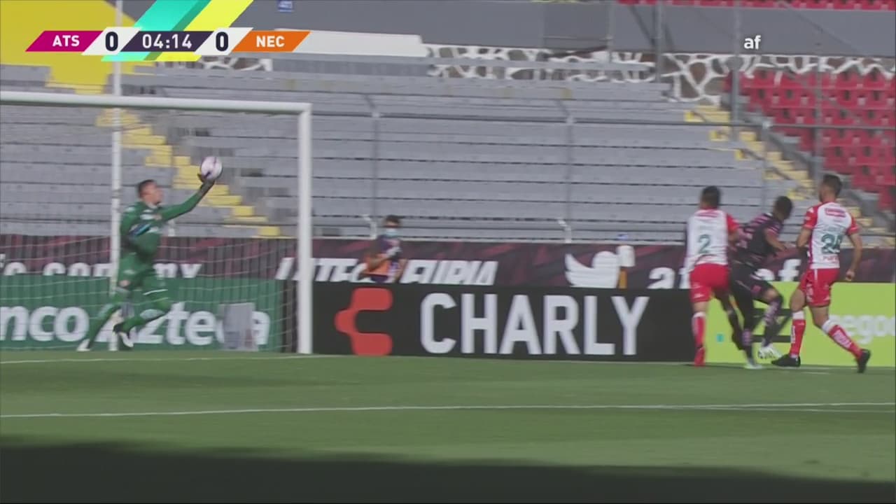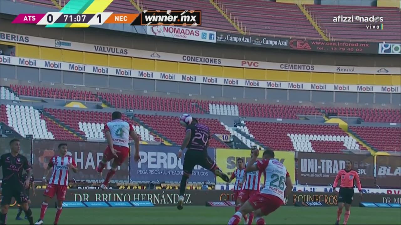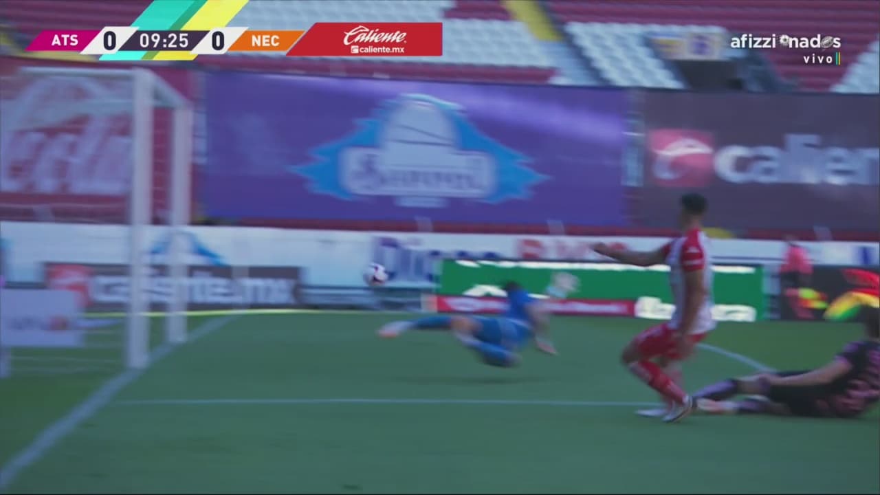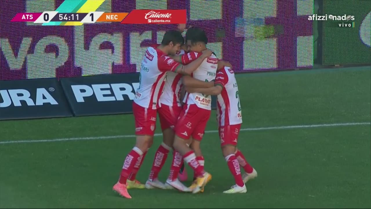 Atlas no dejó de intentar, pero no le salían las cosas y en una llegada del Necaxa se hizo un caos en el área del Atlas por varios rebotes, de pronto, Ian González se encontró con la pelota y disparó de primera con lo que logró anotar el primero para romper el cero.