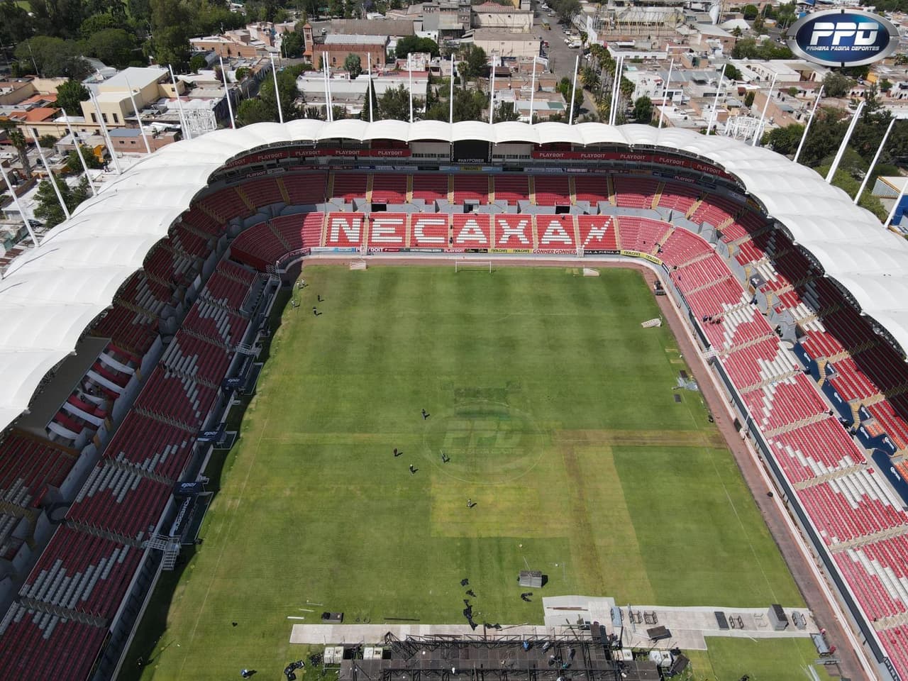 Mañana se enfrentarán Necaxa y Chivas en el Estadio Victoria que no luce en su mejor versión pues circulan imágenes en las que se puede apreciar que el césped del terreno de juego está afectado debido a un cocierto y a las lluvias.