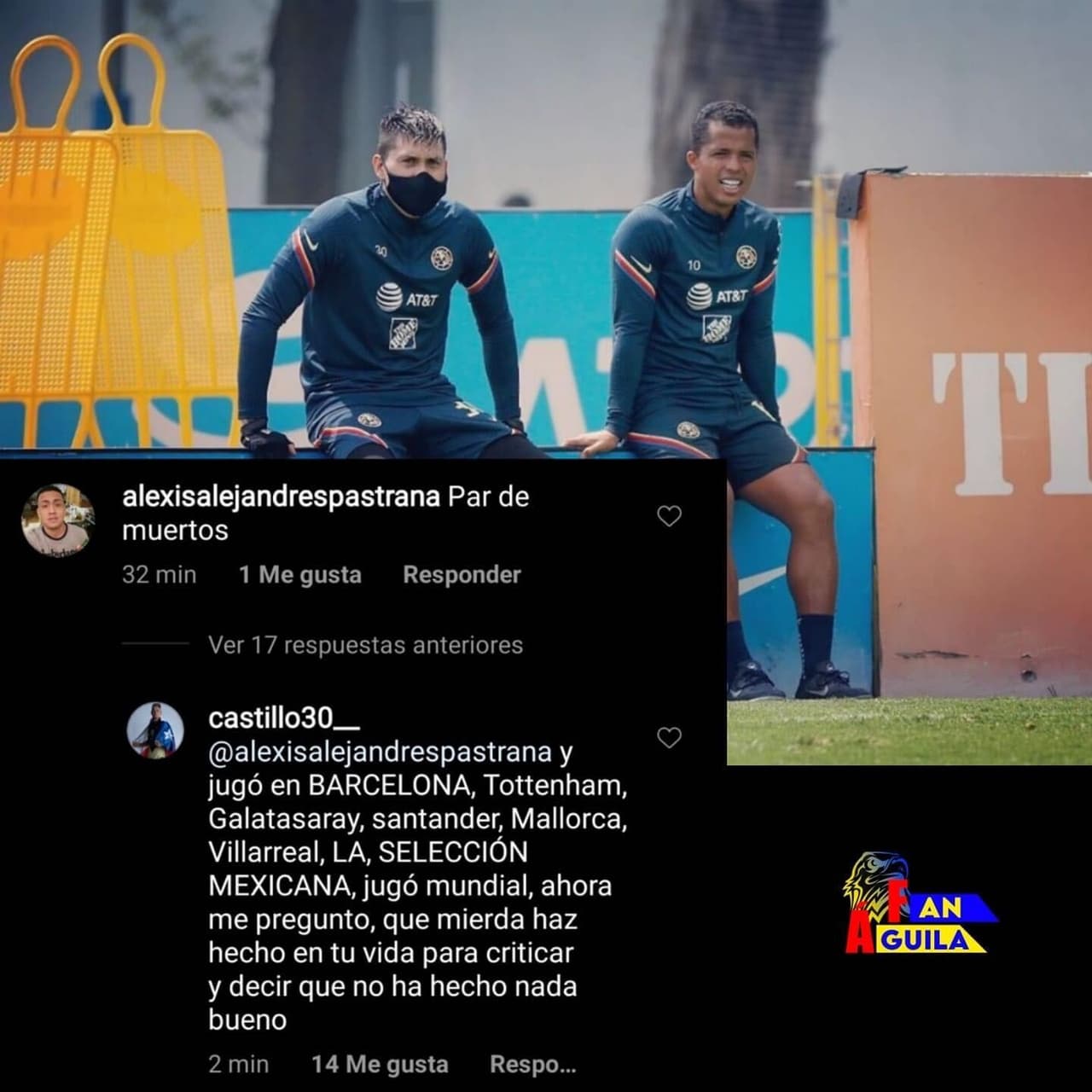 Nicolás Castillo, delantero chileno del América publicó una imagen en la que se encuentra a lado de Giovani dos Santos durante un entrenamiento con las Águilas, el cual tuvo un comentario desagradable sobre el mexicano y al que no dudó en responder.