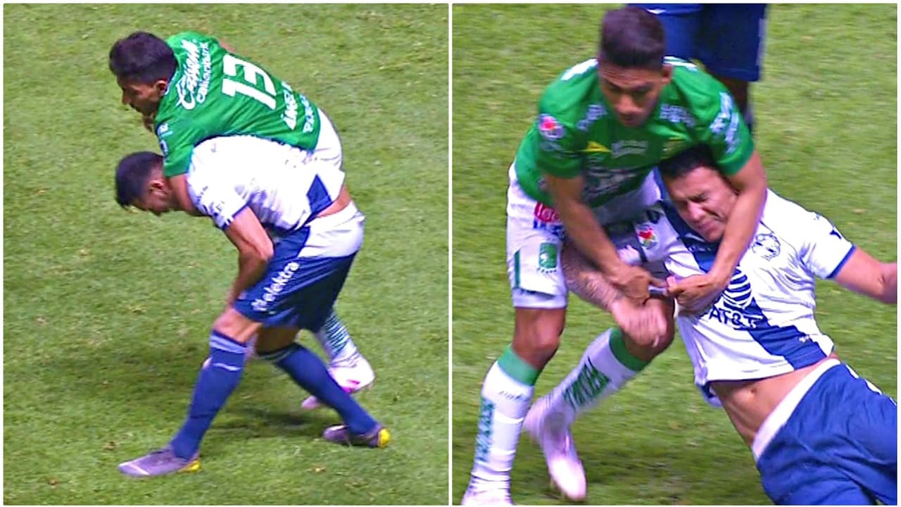 La jugada clave apareció al 45', pues Mena le aplicó un candado digna de la Triple A a Daniel Arreola, quien reaccionó dándole un codazo en los testículos. El árbitro amonestó al goleador del León pero tras revisar la jugada con ayuda del VAR, decidió expulsar al capitán poblano.