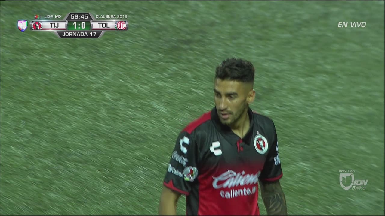 Xolos llega con más claridad al área de Toluca y en esta, por más que se estiró y punteó, Lucero no pudo darle dirección de gol.