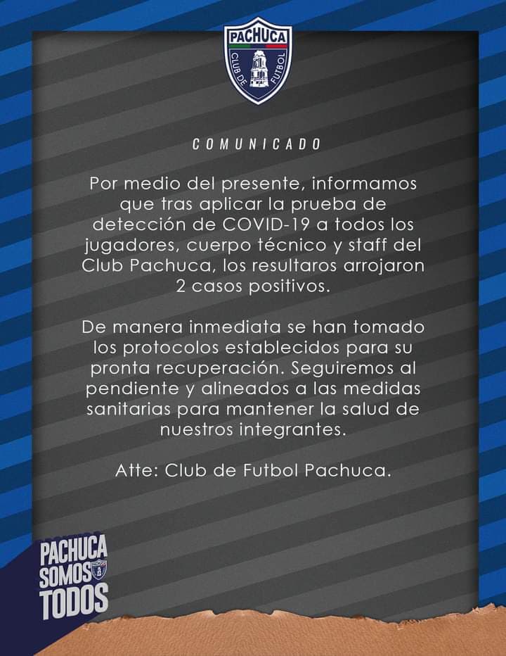 Este jueves el Club Pachuca anunció a través de dos comunicados que tiene cuatro casos positivos en el equipo femenil y dos en el varonil.