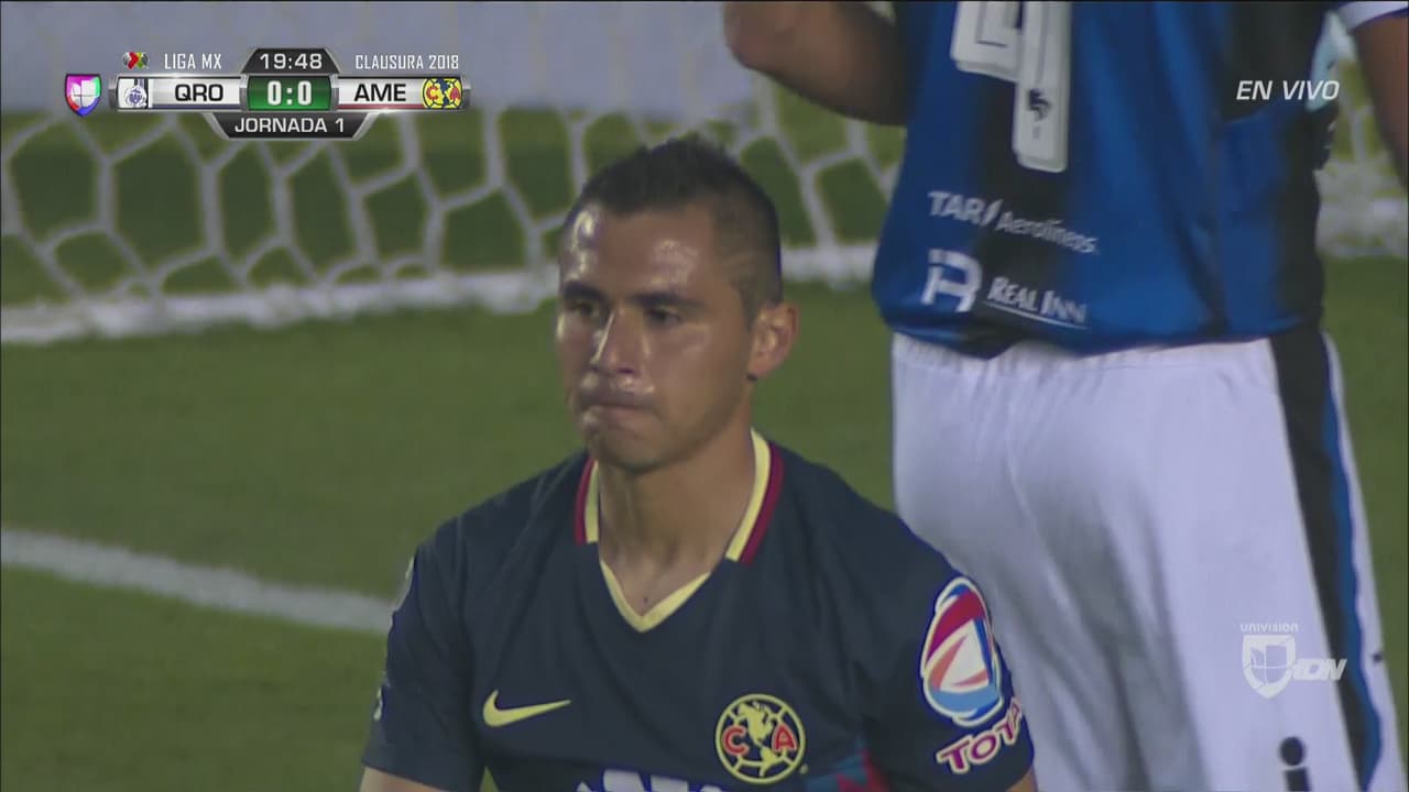 El defensa del América calculó mal y no conectó un balón que de tocarlo debió entrar al arco de Gallos.