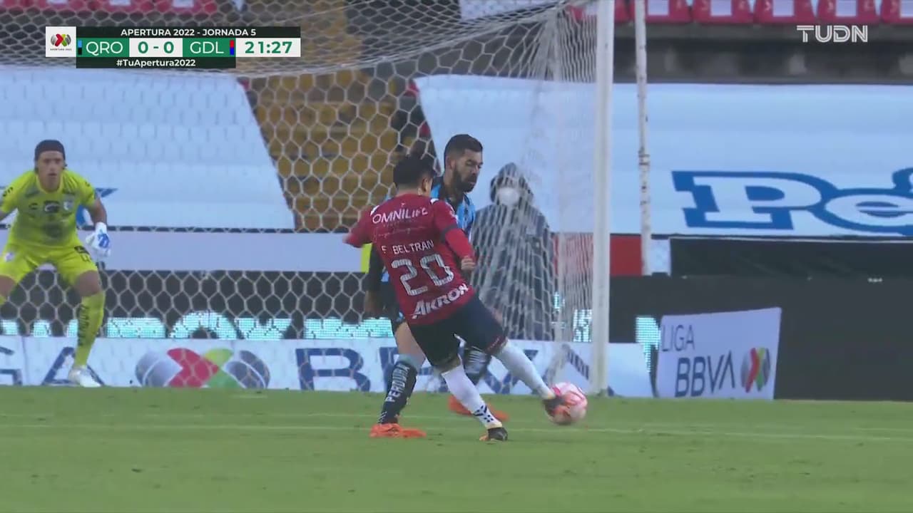 El Nene disparó y por poco se le cuela al arquero de Gallos, el silbante pitó una falta previa al 21’.