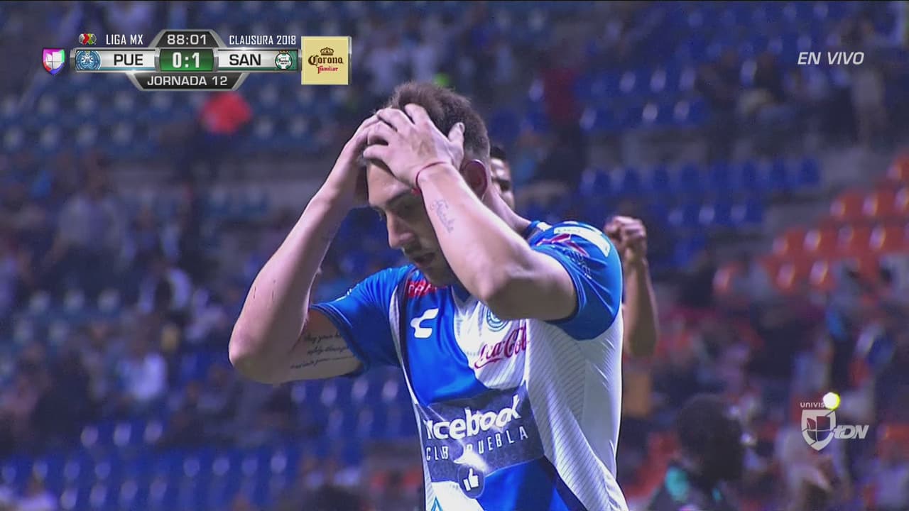 Jesús Escoboza sufrió falta en el área cometida por Jorge Flores Villafaña. El encargado en ejecutar fue Lucas Cavallini, quien pateó fuerte y desviado por arriba del arco. Era el empate de Puebla'.