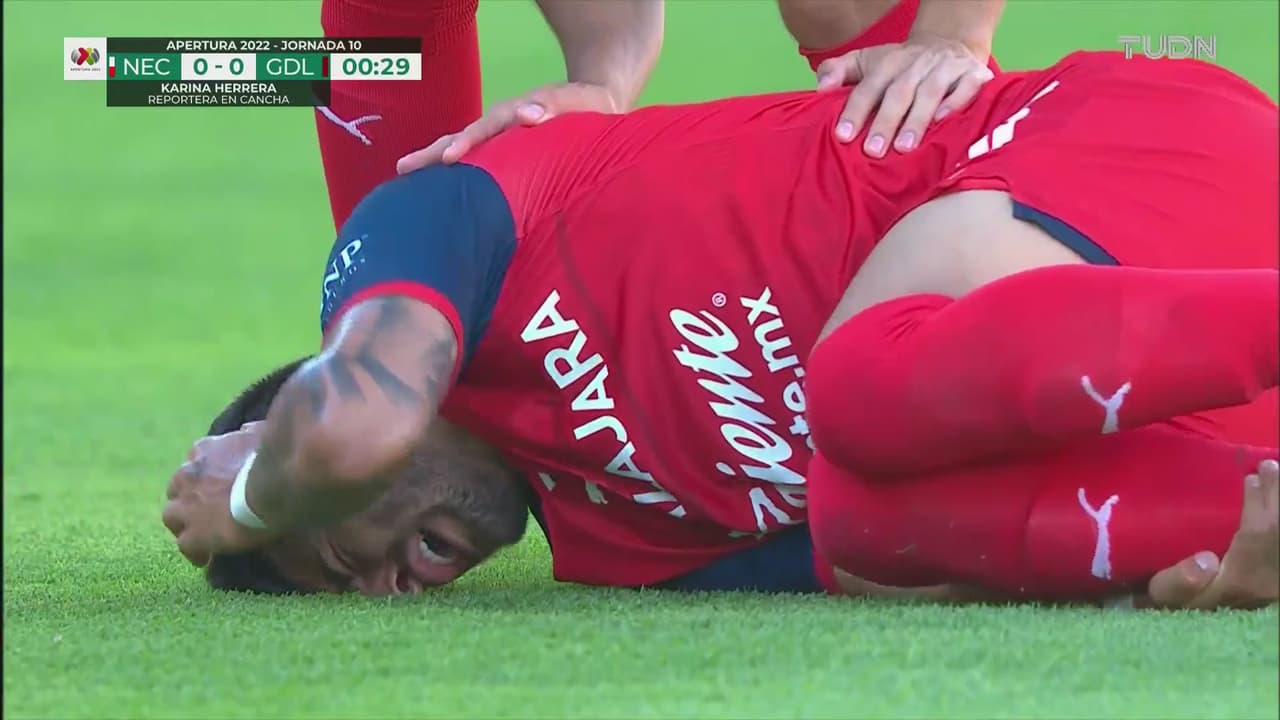 El defensa del Necaxa tuvo una dura entrada sobre el jugador de Chivas, pero el silbante solo mostró la amarilla al 1’.
