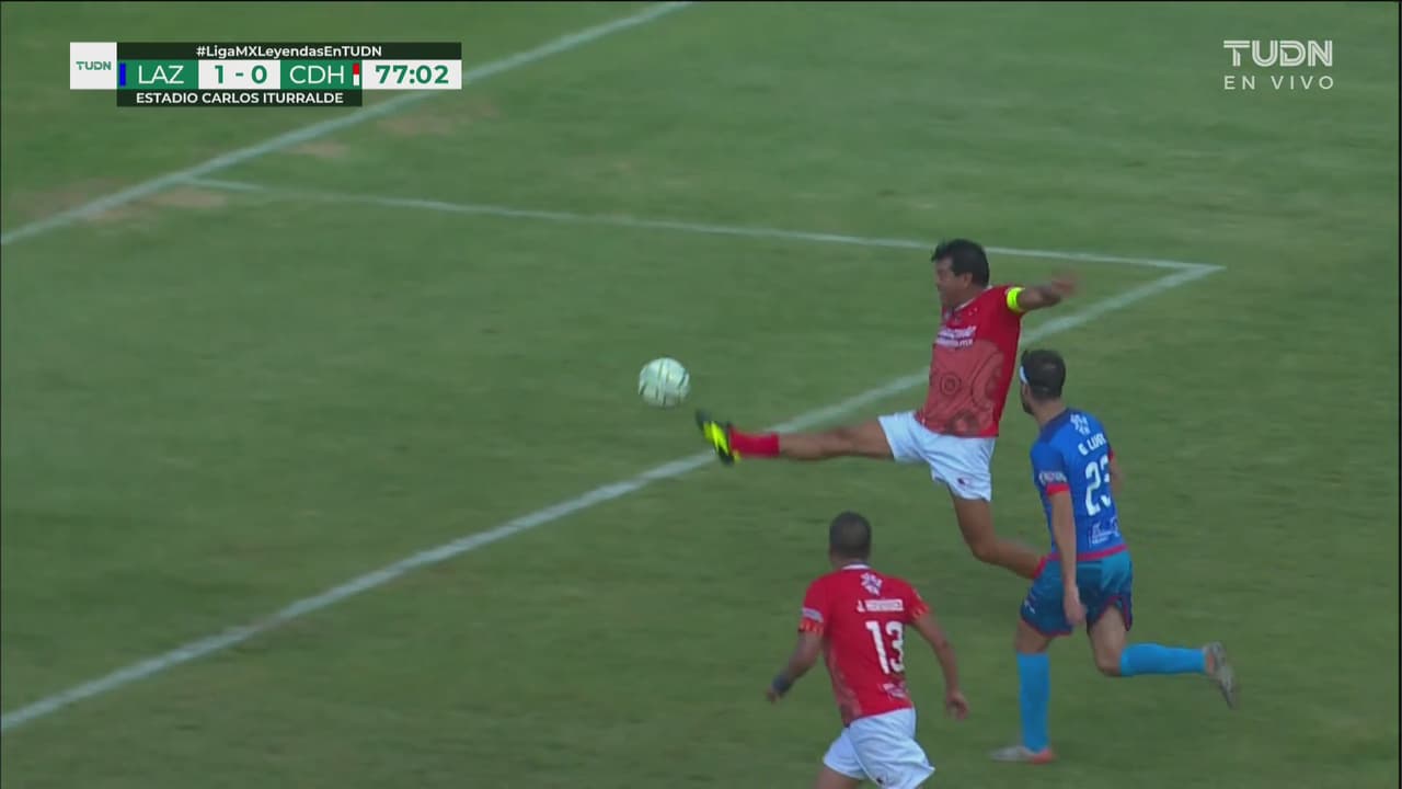 El delantero de las Leyendas del Toluca estiró la pierna para intentar poner el empate y terminó adolorido.