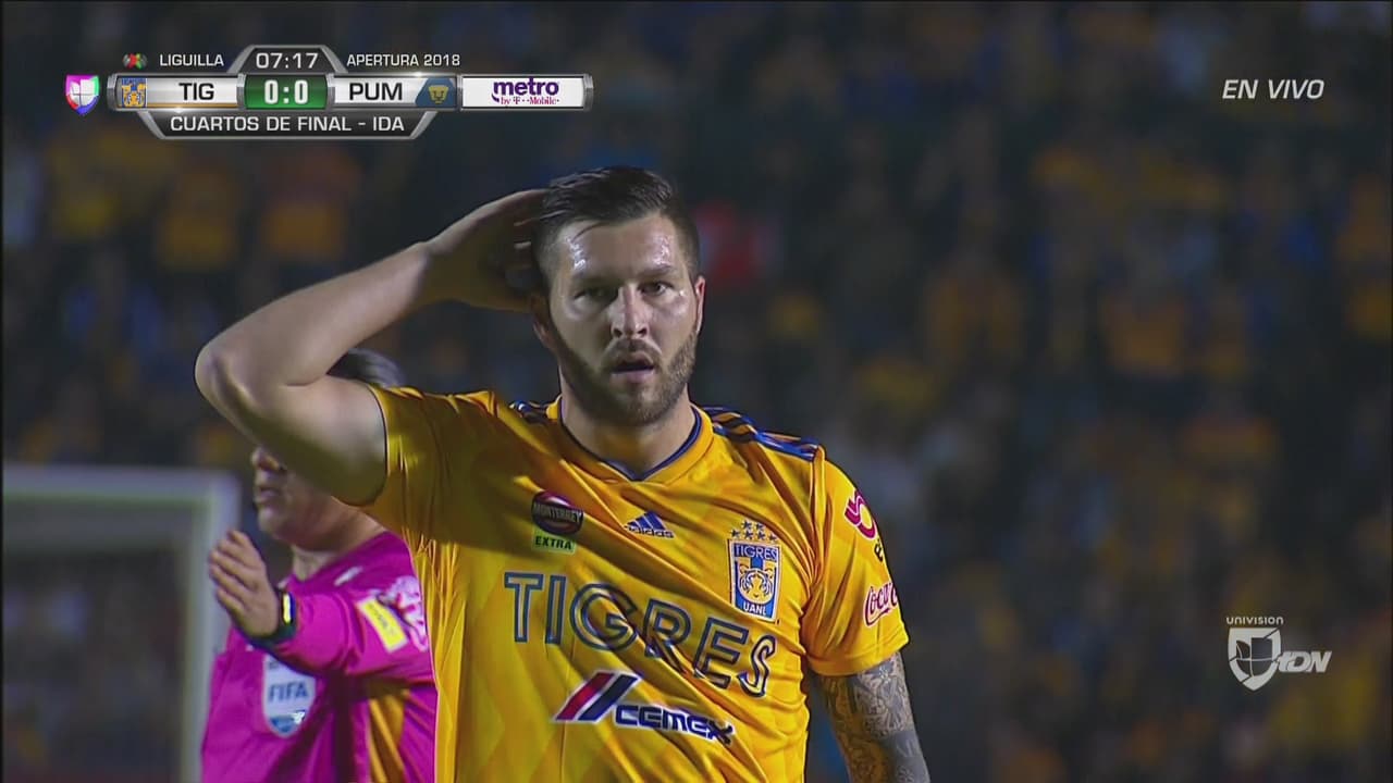 Tigres robó la pelota en la salida, Gignac recibió, se acomodó y sacó un riflazo que apenas se fue abierto del arco de Pumas.