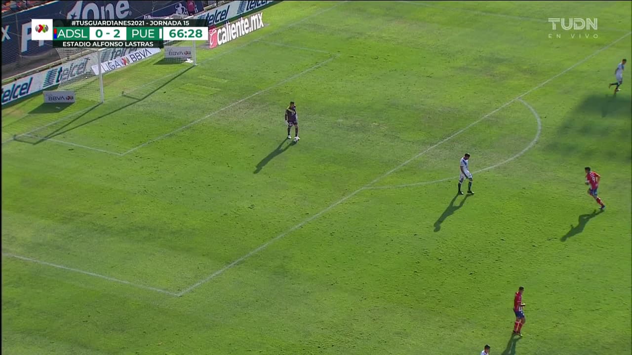 Ante el grito de la afición que pedía la salida de Leonel Rocco del banquillo del San Luis, los poblanos tomaron el control del encuentro, se hicieron del balón para cuidar la ventaja y al minuto 80 Amaury Escoto cayó dentro del área, la jugada fue revisada por el VAR y se sancionó con penalti que Daniel Álvarez cobró de buena manera para el tercero de La Franja. El cuarto tanto llegó en tiempo de compensación Guillermo Martínez hizo el cuarto al rematar de cabeza ante la salida de Axel Werner.