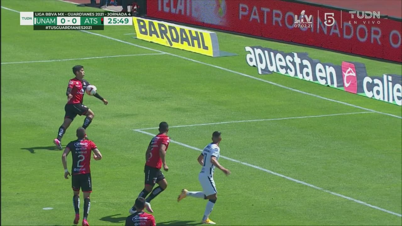 Atlas seguía tocando la puerta por todos lados y Renato Ibarra se levantó a un buen centro y cabeceó de forma correcta, pero desviado de la portería.