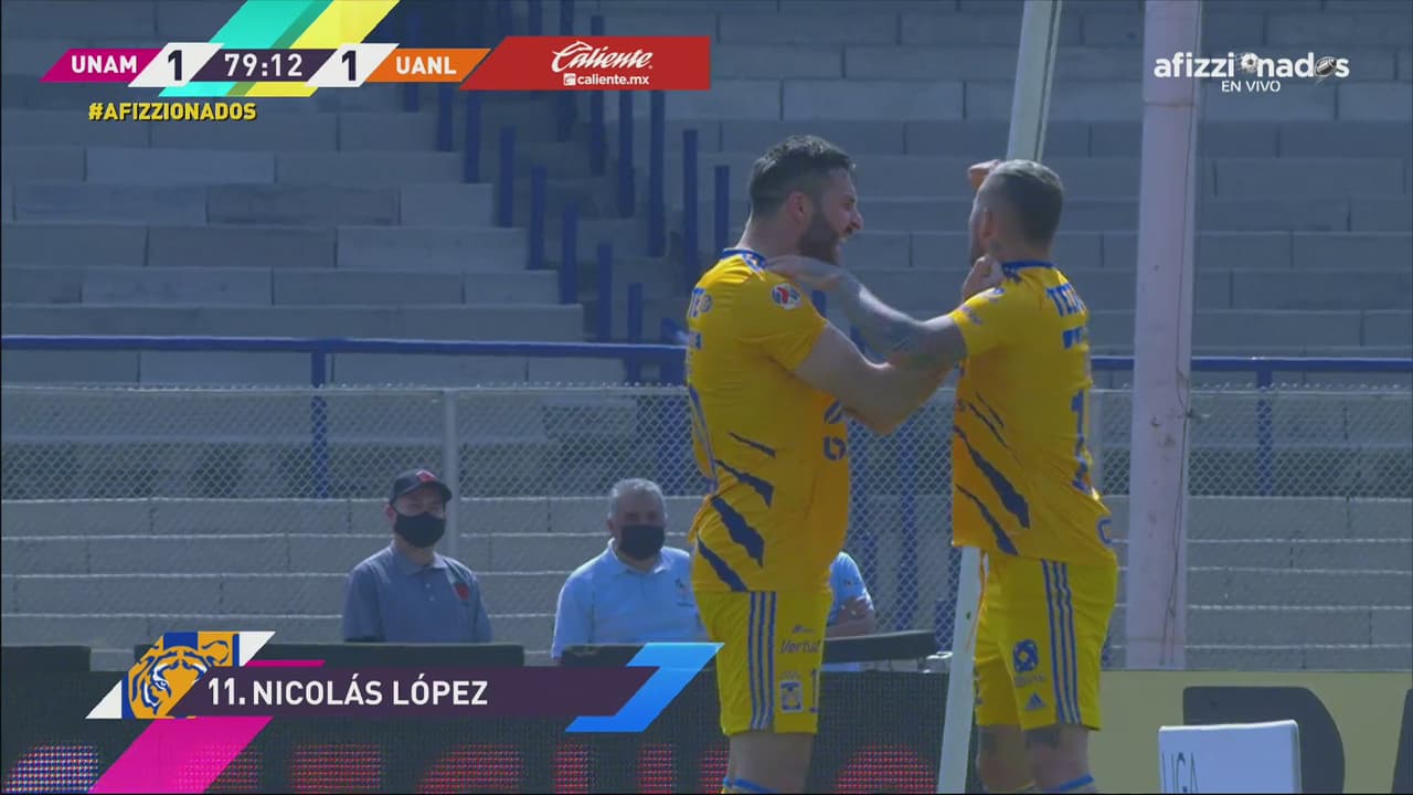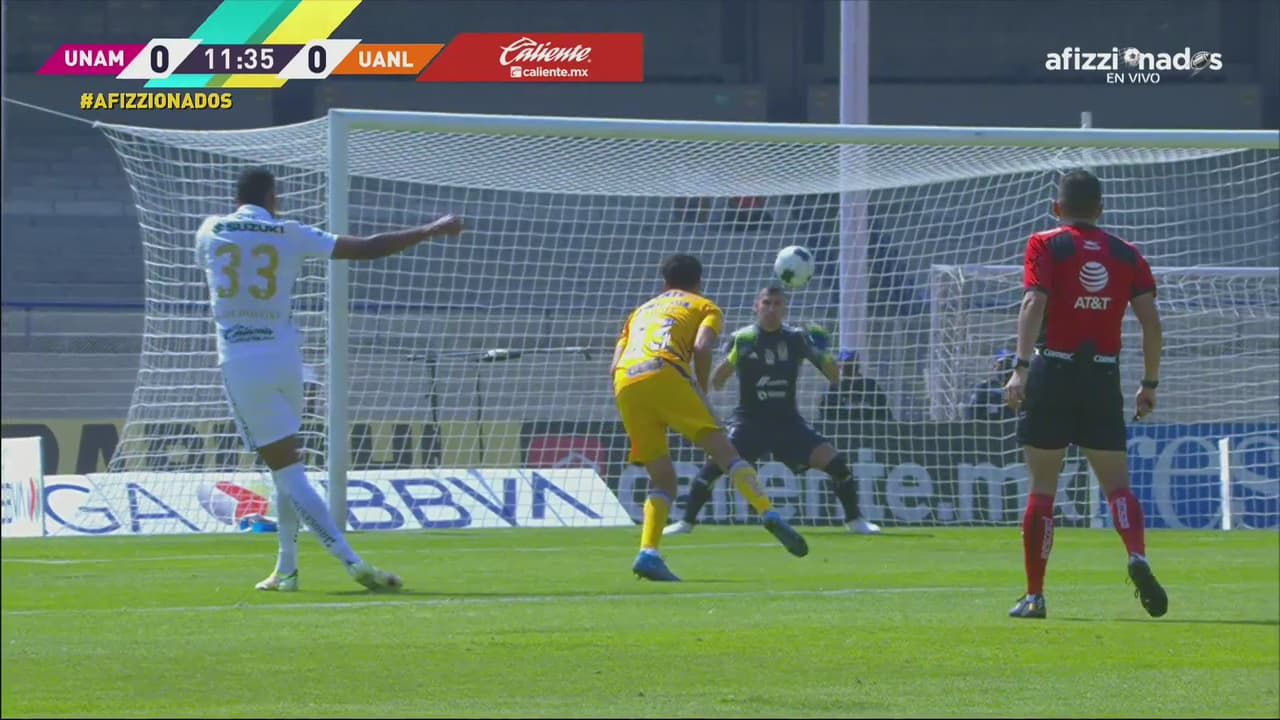 Pumas perdió el balón en medio campo, mandaron trazo a Quiñonez para la derecha, lanzó centro largo a segundo palo, vino el cabezazo de Gignac que pegó en el poste y en el rebote llegó 'Diente' López para empatar.
