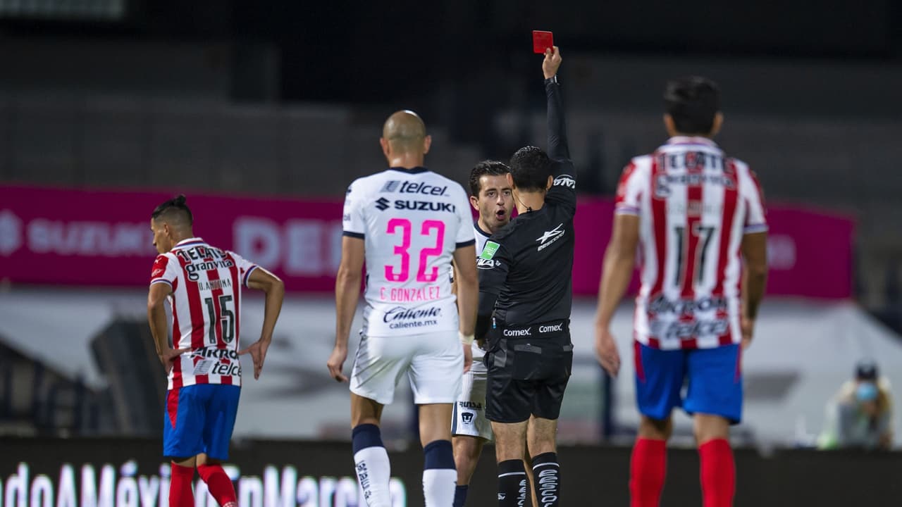Alan Mozo se fue expulsado al minuto 87 luego de ver la doble amarilla ya que había sido amonestado por otra infracción al minuto 24 en el empate entre Pumas y Chivas a dos goles.