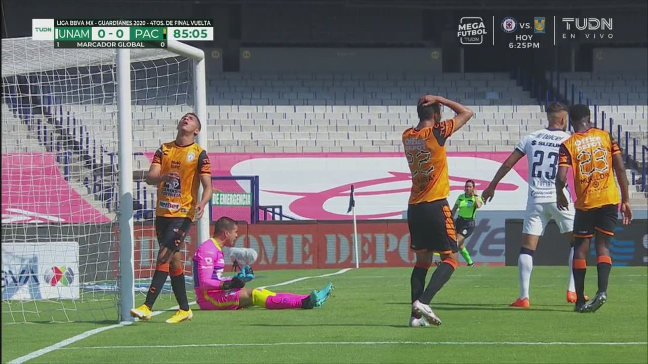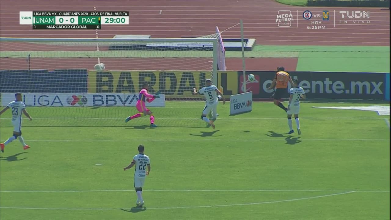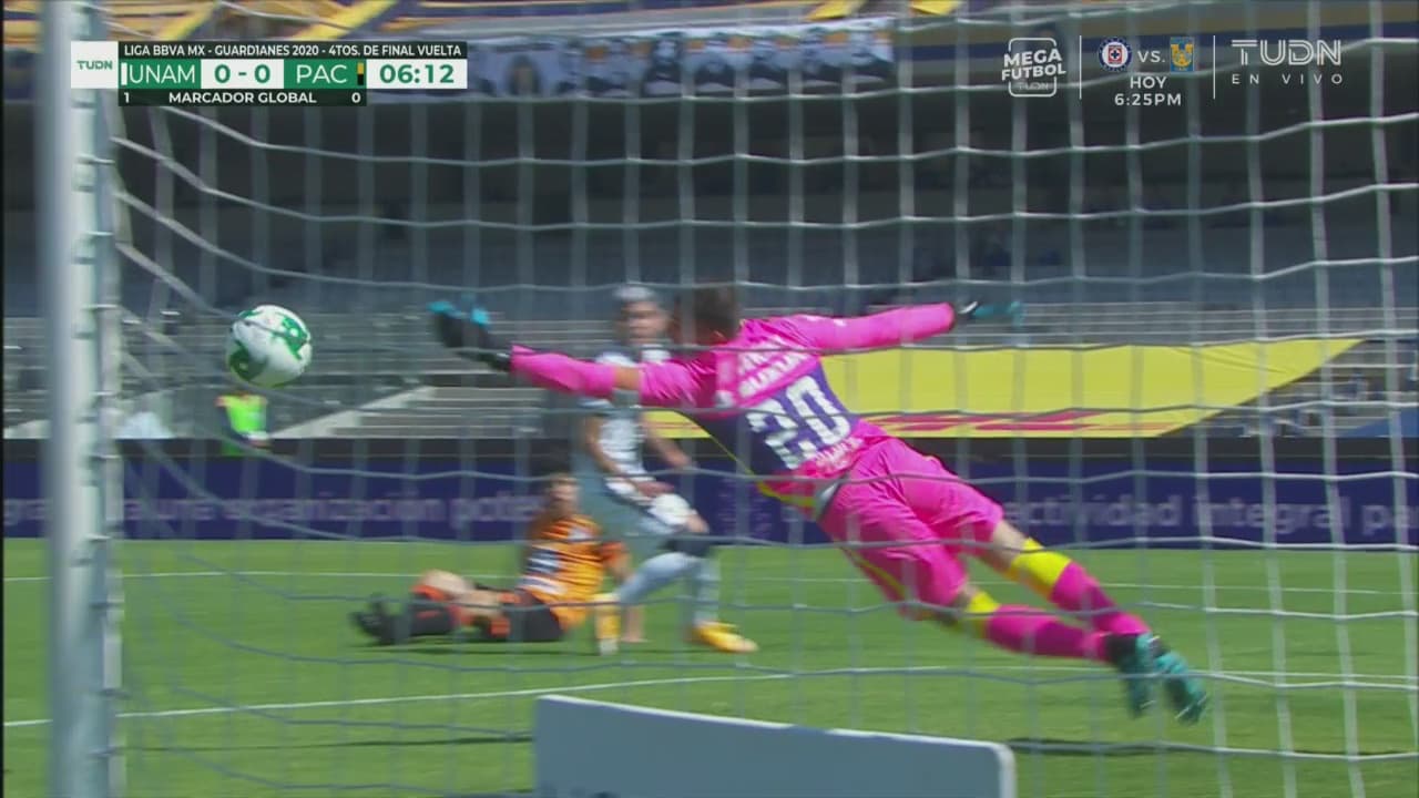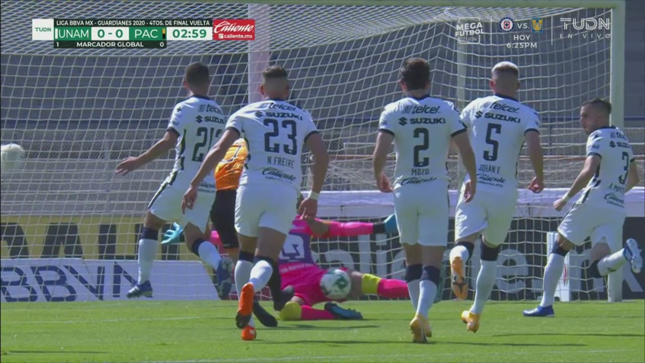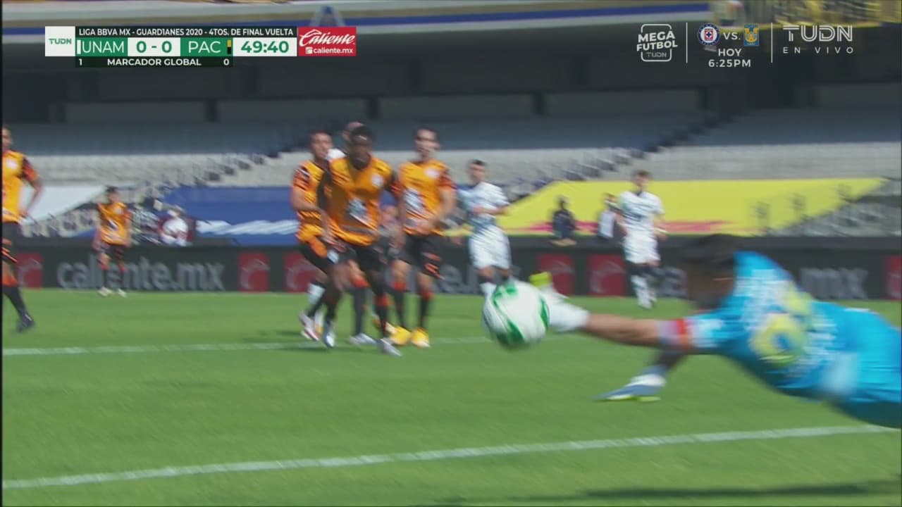 Gran combinación de los universitarios a pase de Carlos González que buscaba convertir Gutiérrez, pero Óscar Ustari se volvió un muro y evitó el tanto de Pumas.