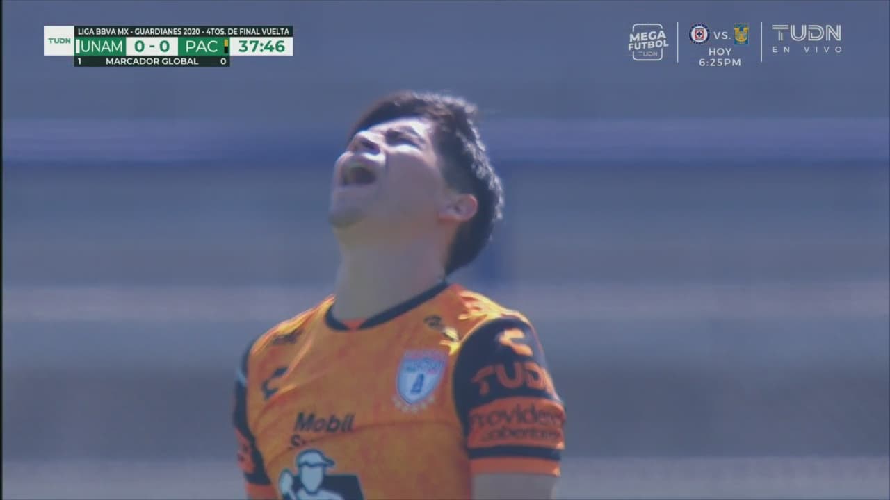 El palo se interpone en el camino del remate de Dávila que seguía generando peligro para Pachuca y de tres nada.