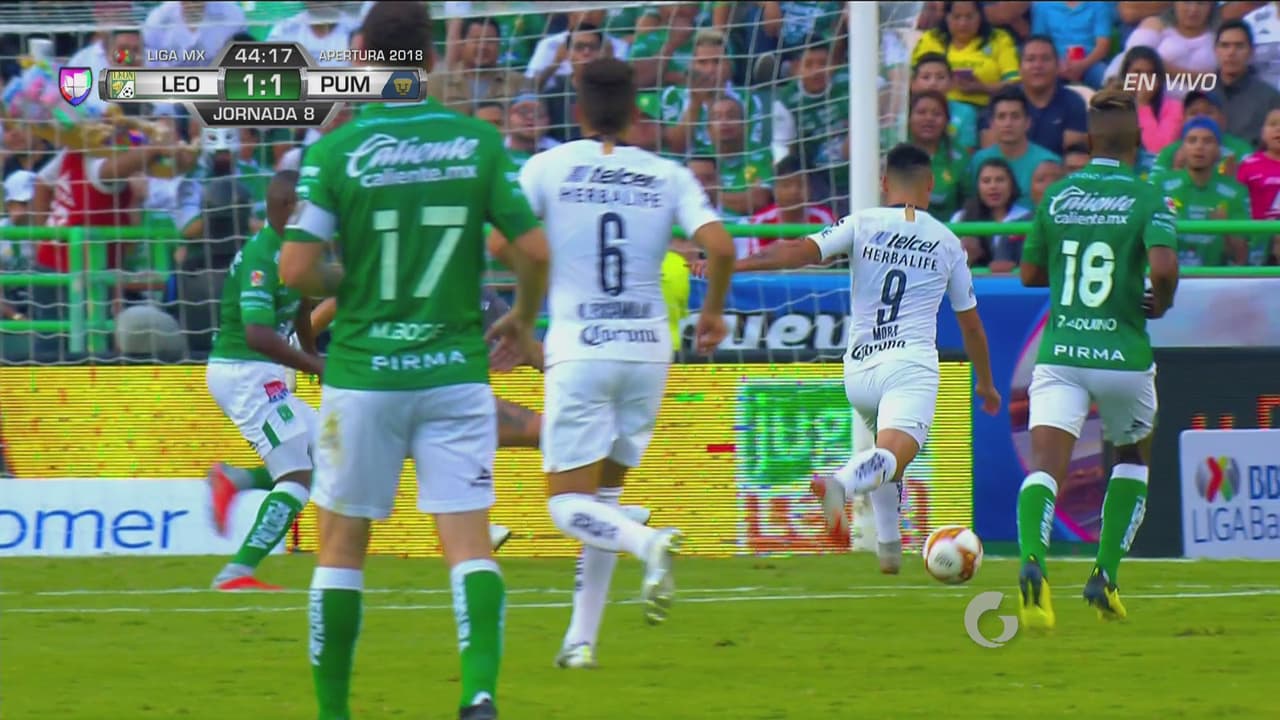 Si las cosas pintaban favorables para Pumas, el panorama se hizo más amigable al minuto 58 cuando León se quedó sin Pedro Aquino, por expulsión, luego de una falta sobre Malcorra.