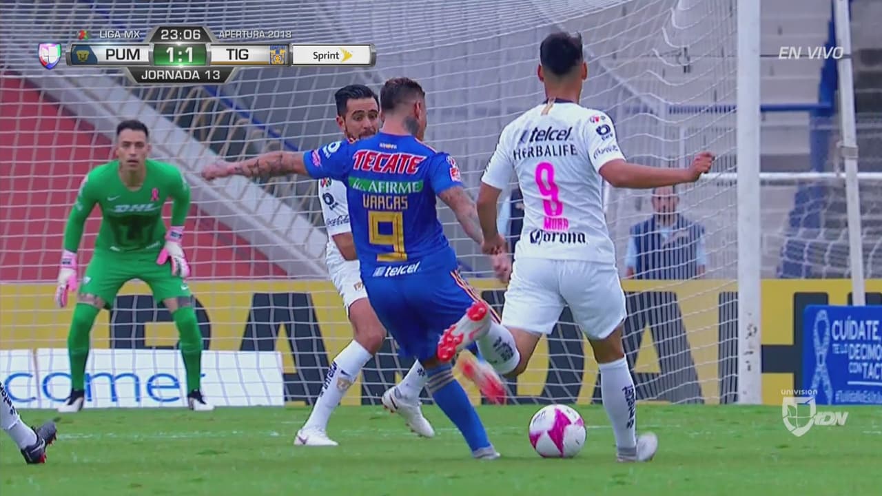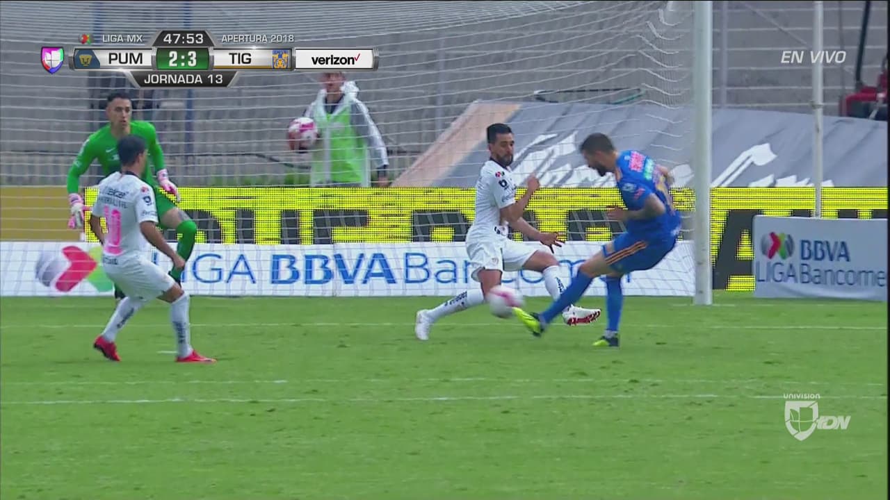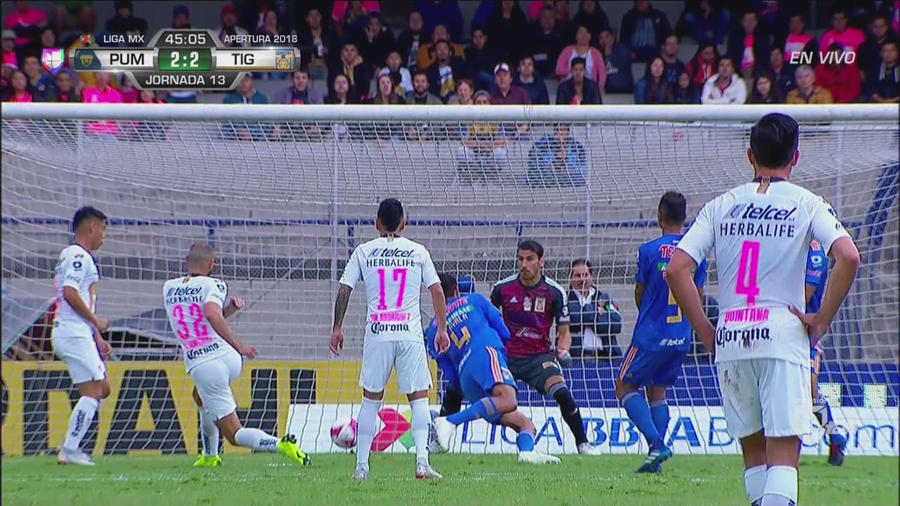 Tigres le daba la vuelta, pero antes de terminar el primer tiempo, Pumas tendría la última palabra. Un nuevo centro de derecha encontró la pierna derecha de Carlos González quien, de aire, prendió el esférico para volver a vencer a Nahuel.