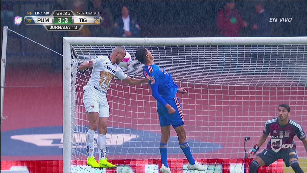 Pero faltaba aún la respuesta de Pumas. Otra vez, como en los dos goles anteriores, llegó un centro desde derecha, ahora de Pablo Barrera, para que Carlos González se alzara y metiera un auténtico fierrazo de cabeza para poner el 3-3 definitivo.