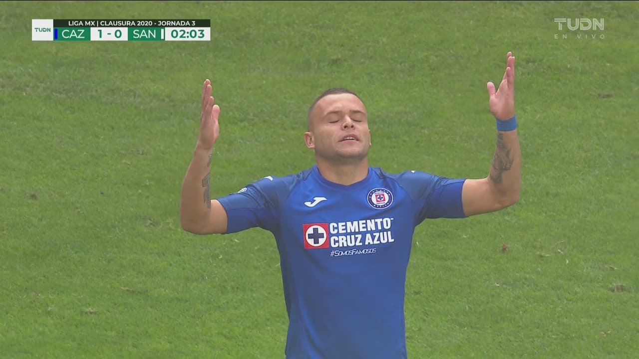 Jonathan Rodríguez sacó un potente remate que dejó sin oportunidad al arquero de Santos.