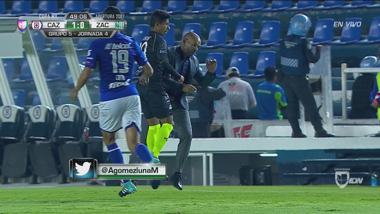 Ahora el DT celeste salió de su área técnica y chocó con Mauro Contreras del Zacatepec