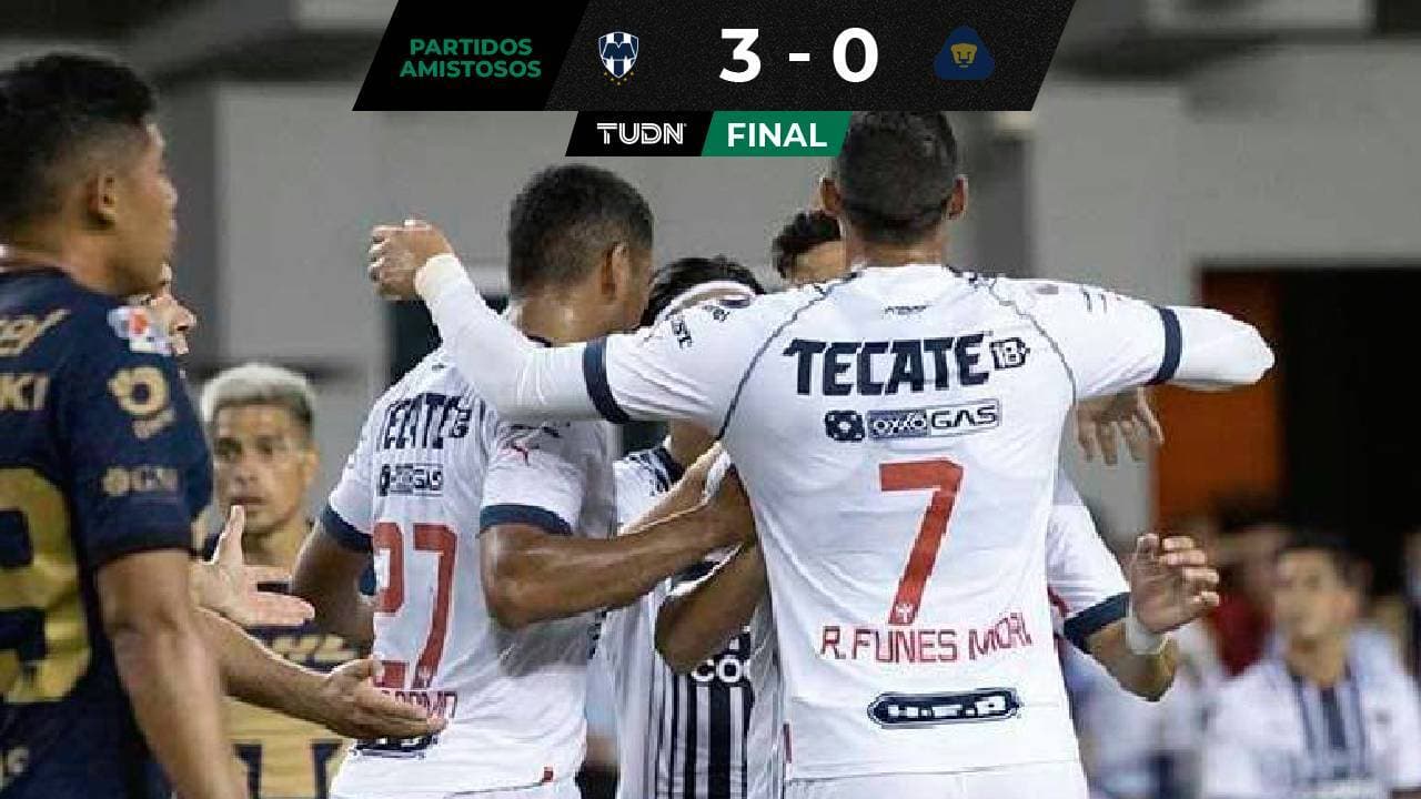 Los Rayados de Monterrey golearon 3-0 a Pumas en duelo celebrado en Edinburg, área de McAllen en Texas, todo después de que los felinos venían de ganar en el Clásico Capitalino al América.