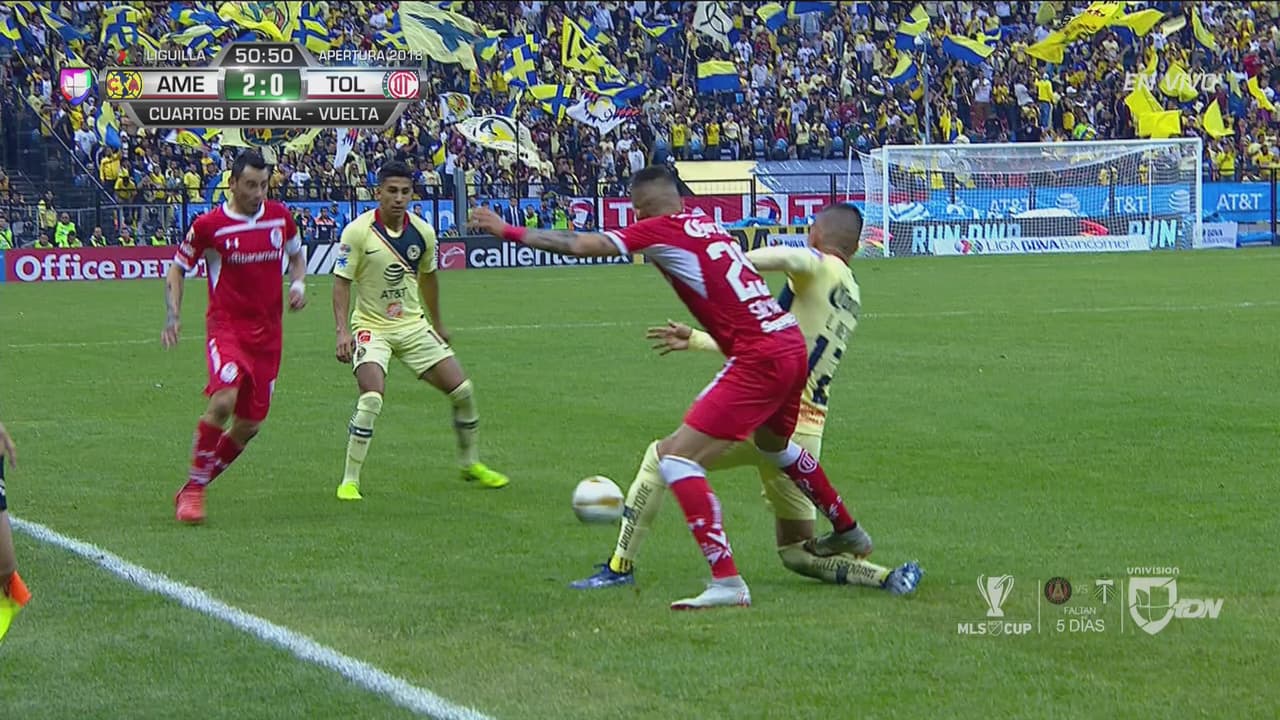 El lateral escarlata le entró de muy fea forma a Mateus Uribe.