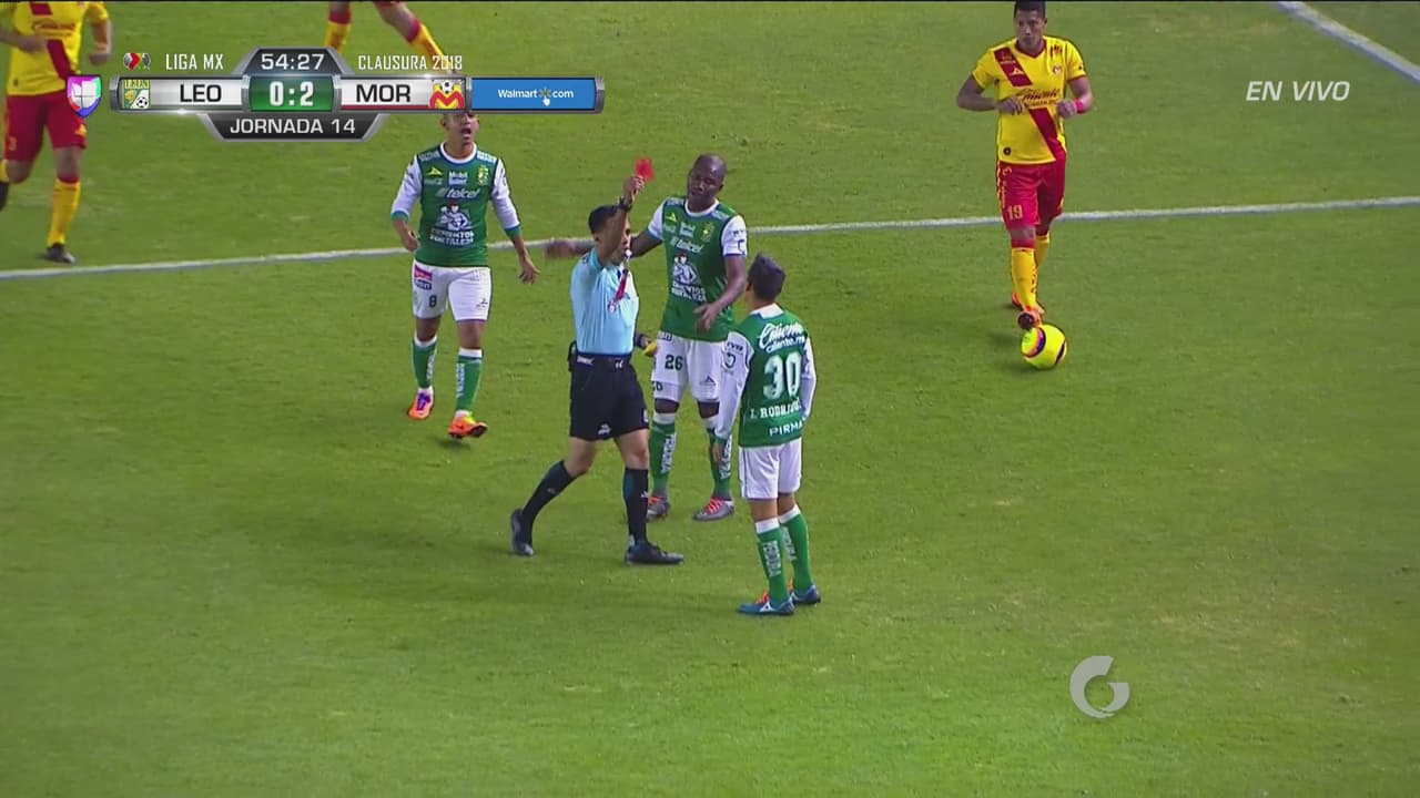 El mediocampista de contención cometió un jaloneo y el árbitro le sacó la segunda tarjeta amarilla para luego ser expulsado y dejar con un hombre menos a los Panzas Verdes.