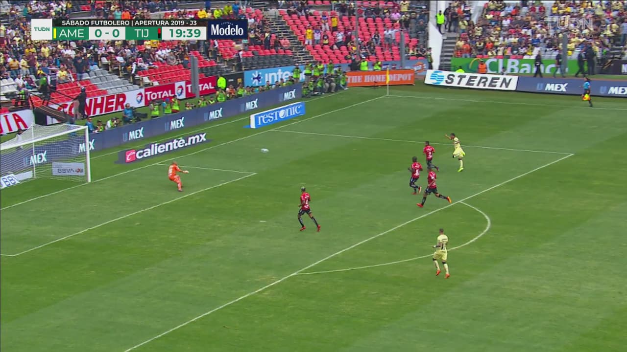 El colombiano lanzó un tiro poderosísimo que pasó a un lado del arco de Lajud.
