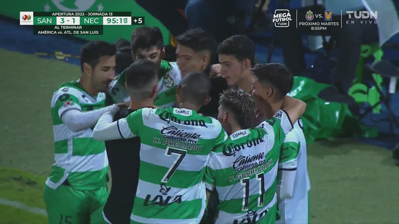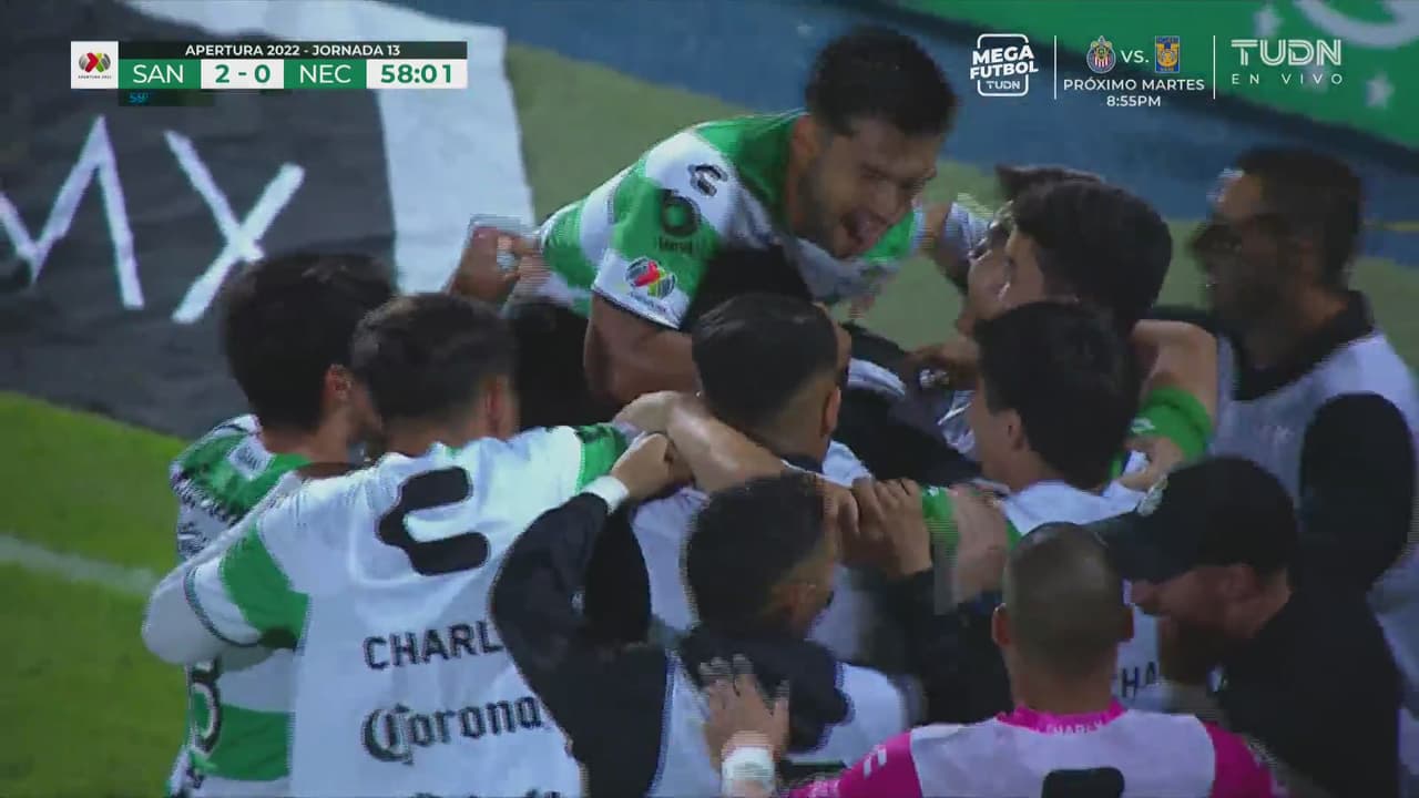 Santos Laguna consiguió una cómoda ventaja de 2-0 sobre Necaxa, éste que alcanzó a reaccionar en la recta final del torneo con un gol, pero insuficiente para empatar, luego de que el marcador final fuera 3-1 en uno de los juegos que abrieron la Jornada 13 del Apertura 2022 de la Liga MX junto al León vs FC Juárez.