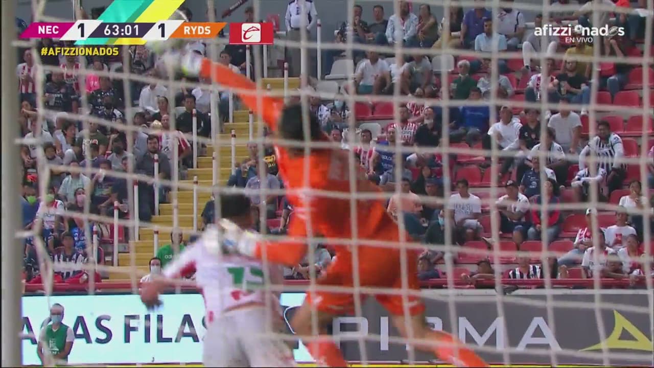 Araos comete falta sobre el portero y se invalida la anotación de Necaxa al 63’.