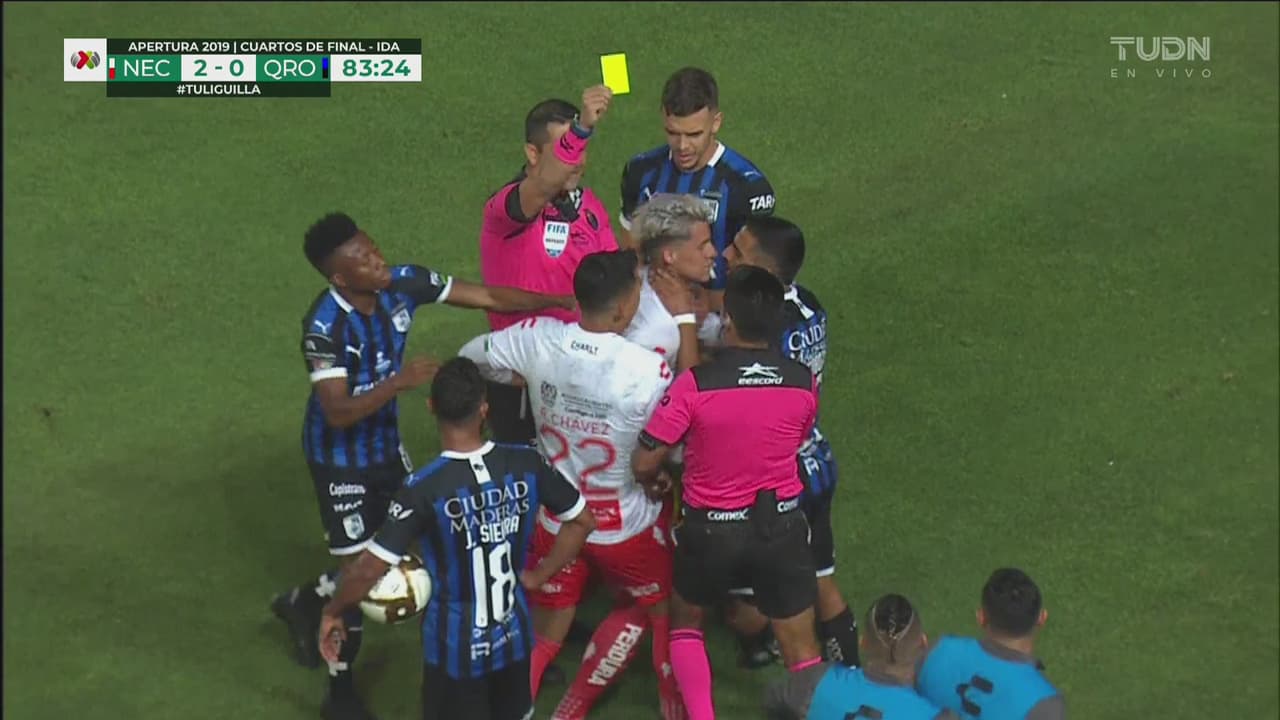 Jesús Escoboza le tira una patada a Mauro Quiroga y Cristian Calderón saca lo gallito ante los jugadores del Querétaro.