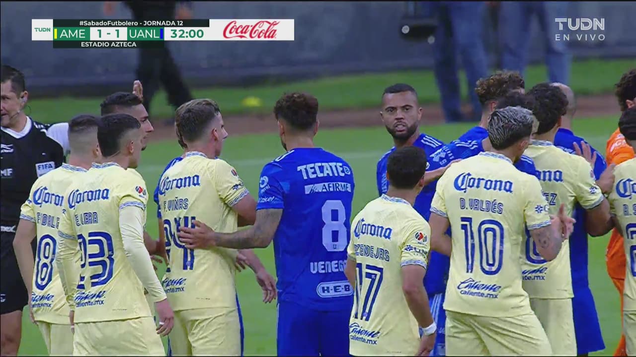 Alex le entró con los tachones al tobillo, fue amonestado tras el VAR, pero lo ánimos se calentaron.
