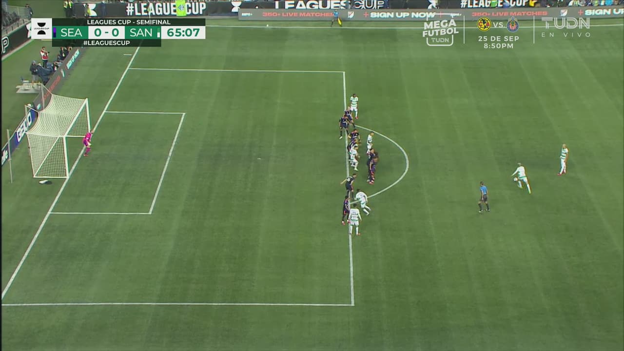 Seattle comenzó con potencia ofensiva el encuentro, tuvo los espacios necesarios y la confianza para empezar a generar peligro con un bombazo de Ruidíaz desde media cancha que agarró adelantado a Lajud, pero el mexicano evitó el problema.