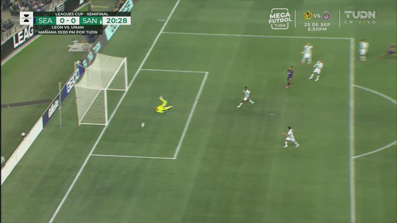 Santos no pudo tener el balón y las oportunidades seguían en favor de los Sounders y con velocidad rebasaron las líneas mexicanas con buenas sensaciones. Así llegó otra vez Ruidíaz, pero Lajud le quitó la posibilidad.