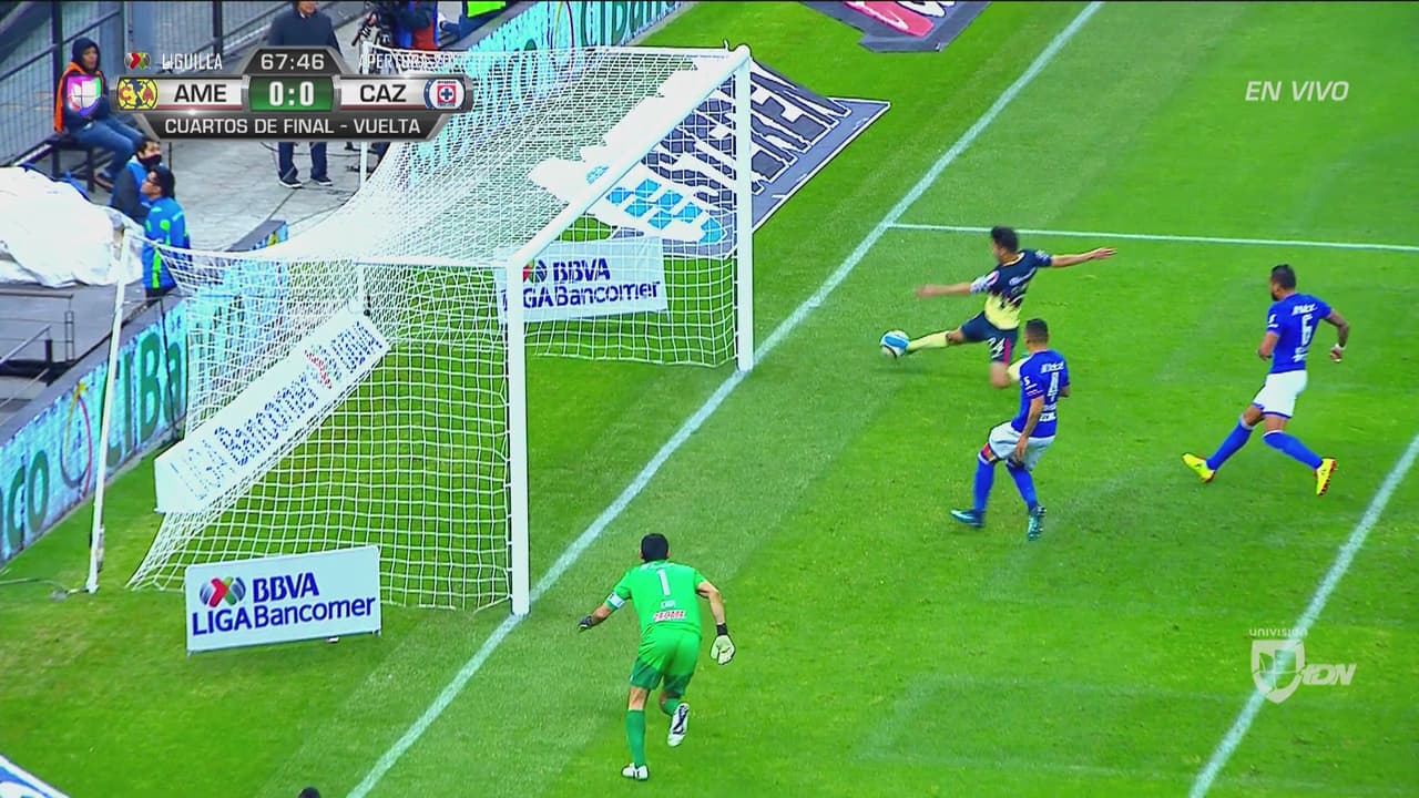 Instantes después, las Águilas armaron un contragolpe en el que Darwin llegó a línea de fondo, sacó a Corona y luego metió un tiro-centro que se paseó por toda la línea de gol y que Oribe no llegó a tiempo para empujar. Nervio al máximo en el Azteca.