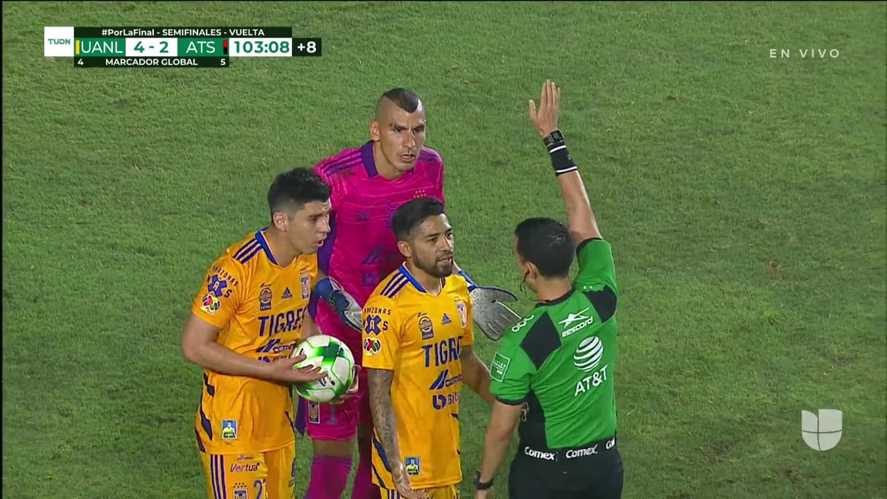 Nahuel Guzmán (Tigres) segunda tarjeta amarilla.