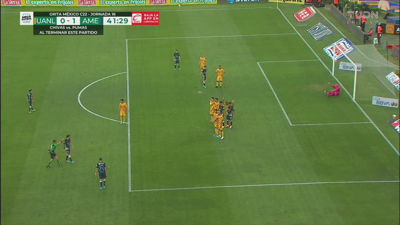 Durante la primera parte América fue superior y lo demostró Diego Valdés con un desequilibrio en el área a los 32 minutos y que terminó por exhibir de fea forma a la defensa de los Tigres, de forma especial a Jesús Angulo que nada hizo para detener el potente disparo del chileno a las redes de Nahuel.