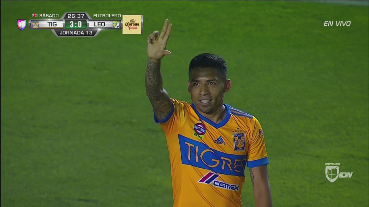 Sin mayores contratiempos y solo empleándose a fondo durante 45 minutos, los Tigres aplastaron 4-1 a un triste León que poco a poco se aleja de las posibilidades de Liguilla y ve cómo se le agotan los argumentos al ‘Chavo’ Díaz, su estratega.