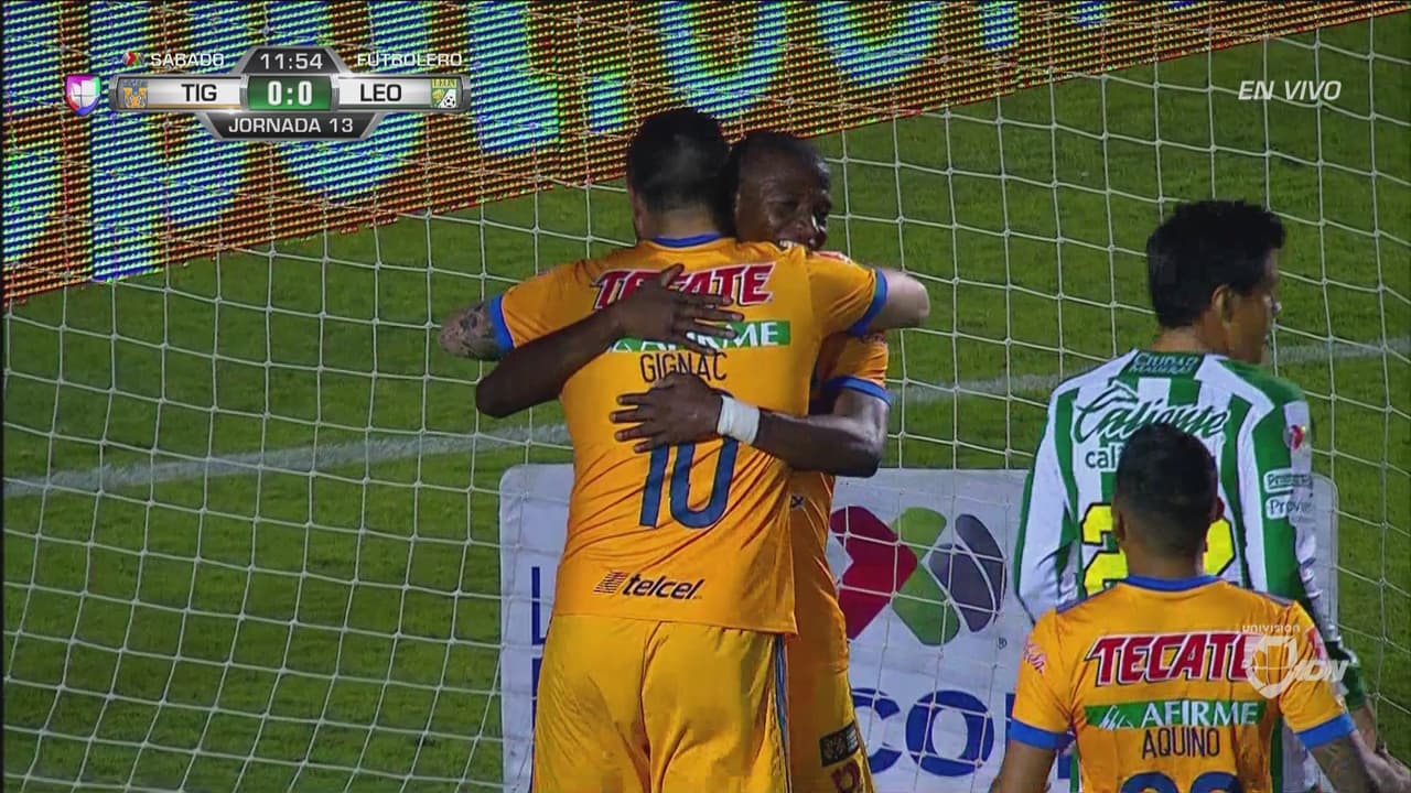 Apenas a los 12 minutos de partido apareció Enner Valencia para poner el primer gol del partido en una gran jugada colectiva que realizaron los del ‘Tuca’ Ferretti y que el ecuatoriano culminó con una buena definición dentro del área de León.