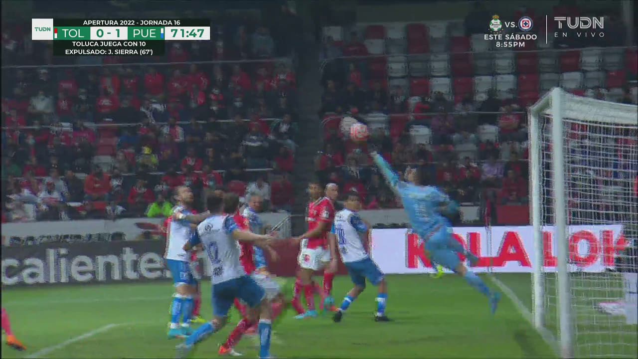 La ventaja siguió en favor del Puebla y Tiago Volpi se erigió como el héroe de los Diablos Rojos, pues todas sus desviadas los mantuvieron en el juego a pesar de la roja a Jordan Sierra por una plancha.