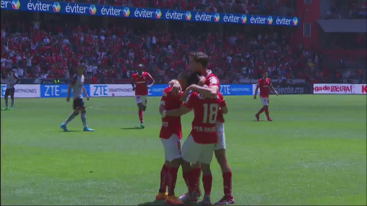 Los Diablos Rojos comenzaron a tambor batiente como ante el Necaxa y en jugada por sector izquierdo vino el centro retrasado de Meneses a ras de pasto para que Leo Fernández venciera con potente tiro a Camilo Vargas.
