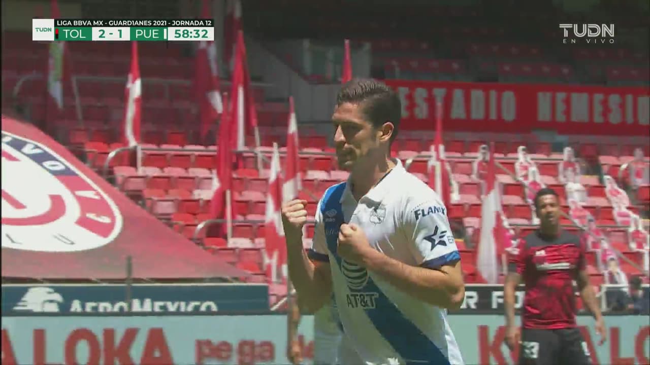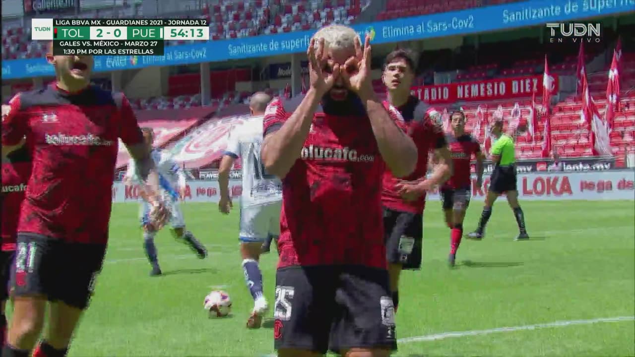 Penal para Toluca por falta sobre Torres Nilo y expulsión para Gularte. Alexis Canelo marcó el segundo desde los 11 pasos a los 54 minutos.