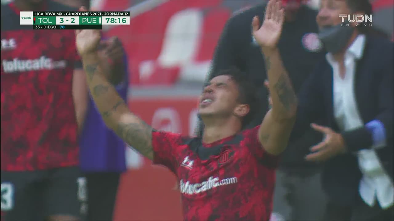 Golazo de Rigonato, el brasileño hizo recepción dirigida y le pegó con todo al ángulo para marcar el tercer tanto de los Diablos Rojos al minuto 78.